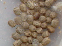 8月に捕獲したトビナナフシは、 順調に産卵し続け、今月20日に死ぬまでの 2か月半の間に250個以上の卵を産みました。 途中、カビが生えたり、こぼしたりしたので 現在は200数個の卵があります。 しかし、水分を与えるとすぐにカビが生えてしまう だいじょうぶかなー。 |