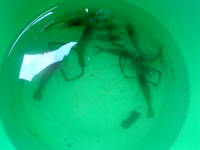 近所のドブ川で、ザリガニをエサに
