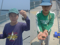 またまた四日市港へ行ってきました。本日は朝の7時30分に到着! 隣のおじさんに聞くと、5時30分にすでに時合い(釣れる時間)は終わったそうで 日の出に来ないとダメだそうです。その他、四日市港の情報を教えていただきました。 例年なら、ゴールデンウィーク過ぎにはアジが釣れるらしいが今年はまだらしい、 はやくアジが釣りたいものだ。 私がサッパを1匹釣っただけなので、隣の霞ヶ浦埠頭へ移動、 私が小さなムラソイを1匹、次男が小さいカサゴ1匹、サッパ1匹を追加、 長男はナマコ?を引っ掛けて、昼頃突然の雷雨となり本日は終了。 |