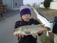 先月の9日のデジャブですか! 近所の用水へ次男とまたいとこのともくんと釣り。 次男はいつものようにいつものコイをゲット! 本日の釣果は、次男…コイ40cm、 ともくん…小ブナ4匹 私…小ブナ、小コイ、クチボソ |
