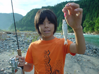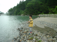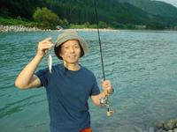 会社の慰安旅行で新平湯温泉へ、夏休みなので家族も連れていってもらいました。 ここのところずっと天気が悪く、当日も東海北陸自動車道で大雨に降られましたが、 高山では雨もあがり散策するには丁度良い曇り空に、しかし夕方新平湯温泉へ到着すると 雨が・・翌日は3時起きで乗鞍岳にてご来光を見る予定でしたが雲の中ではしかたない。 しょうがないので朝食前にとりあえず釣りをすることにしました。 夜はトランプの大富豪で午前様まで盛り上がり、朝は4時に社長と部長をムリやり起こし 高原川でルアー釣りを、しかし川は大増水、なんとか釣りが出来そうな場所で釣り開始! 高原川の本流はデカイのが釣れるそうなんですが、釣れる気がしない。 ところが長男が小さいけれどヤマメを釣り、がぜんやる気が起きます。 その後、私もヤマメとウグイを釣り、すこしルアー釣りがわかった気がします。 宿を出る頃には快晴になり、高山でオークヴィレッジ、ひるがので牧歌の里へ寄り 無事帰宅。お疲れさまでした! |